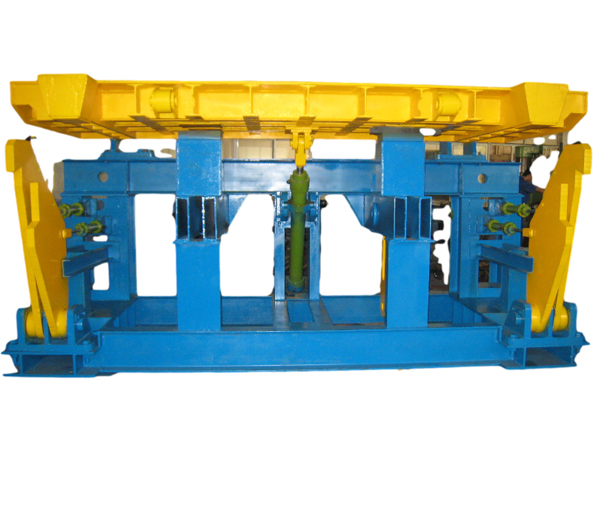 鎖罐搖臺(tái)具有托罐、鎖罐和搖臂搭接功能;該裝置集G內(nèi)搭接搖臺(tái)、換層搖臺(tái)、G外罐籠鎖緊裝置的優(yōu)點(diǎn)于一體。穩(wěn)罐鎖罐搖臺(tái)主要由上搭接臂、下補(bǔ)償臂。鎖定機(jī)構(gòu)等構(gòu)成。他具有補(bǔ)償提升繩伸長(zhǎng)、同步回轉(zhuǎn)搭接、可靠鎖定罐籠及自動(dòng)換層功能。實(shí)現(xiàn)罐籠內(nèi)軌與車場(chǎng)的無縫鏈接,同時(shí)把罐籠鎖定在停罐位置,防止任何行程的罐籠反彈,保證容器對(duì)軌準(zhǔn)確,托罐平穩(wěn),進(jìn)出礦車平穩(wěn)順暢。特別適合于大型礦井、深井的大型、特大型罐籠的承接。