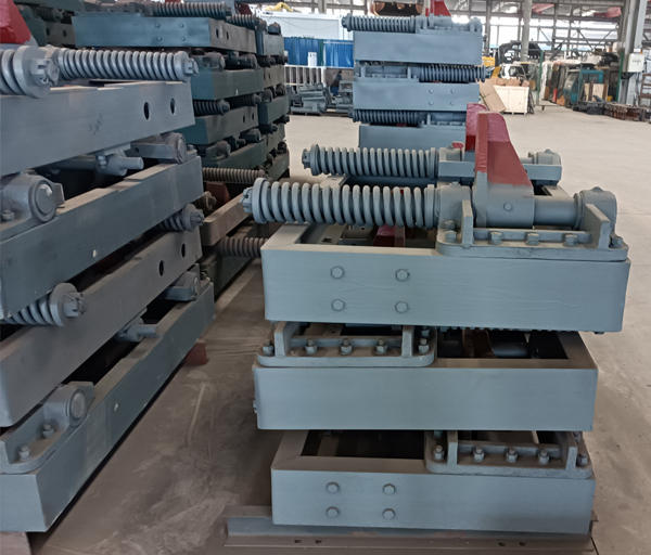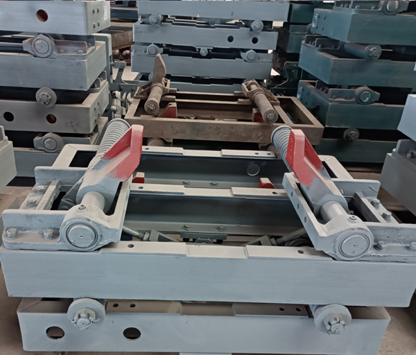 本阻車器阻車時兩個阻爪抱在軌道上,由阻爪阻住礦車車輪實現(xiàn)礦車定位,又稱抱軌式阻車器。阻爪經(jīng)過重新設計,減小了兩阻爪內(nèi)側(cè)面的尺寸,能夠可靠地阻住礦車,解決了傳統(tǒng)阻車器由于阻爪關閉不到位造成單邊阻車而導致礦車掉道的現(xiàn)象。具有結(jié)構簡單,阻車可靠,維護方便,除阻爪外無突出地面的部件,平整美觀,便于人員通行。